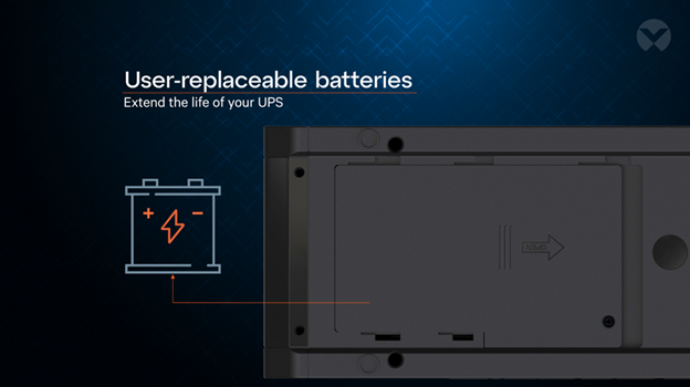 The Vertiv™ PowerUPS 200 Standard, Vertiv™ PowerUPS 200 Essential, and Vertiv™ PowerUPS 200 Premium features user-replaceable batteries to support quick battery replacement and extend the life of your UPS without replacing the entire unit.
