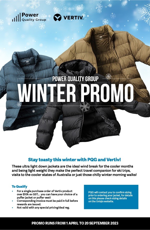 - The promotion is valid for purchases made from 1 April 2023 - 30 September 2023. This promotion may be terminated at any time by PQG or Vertiv.